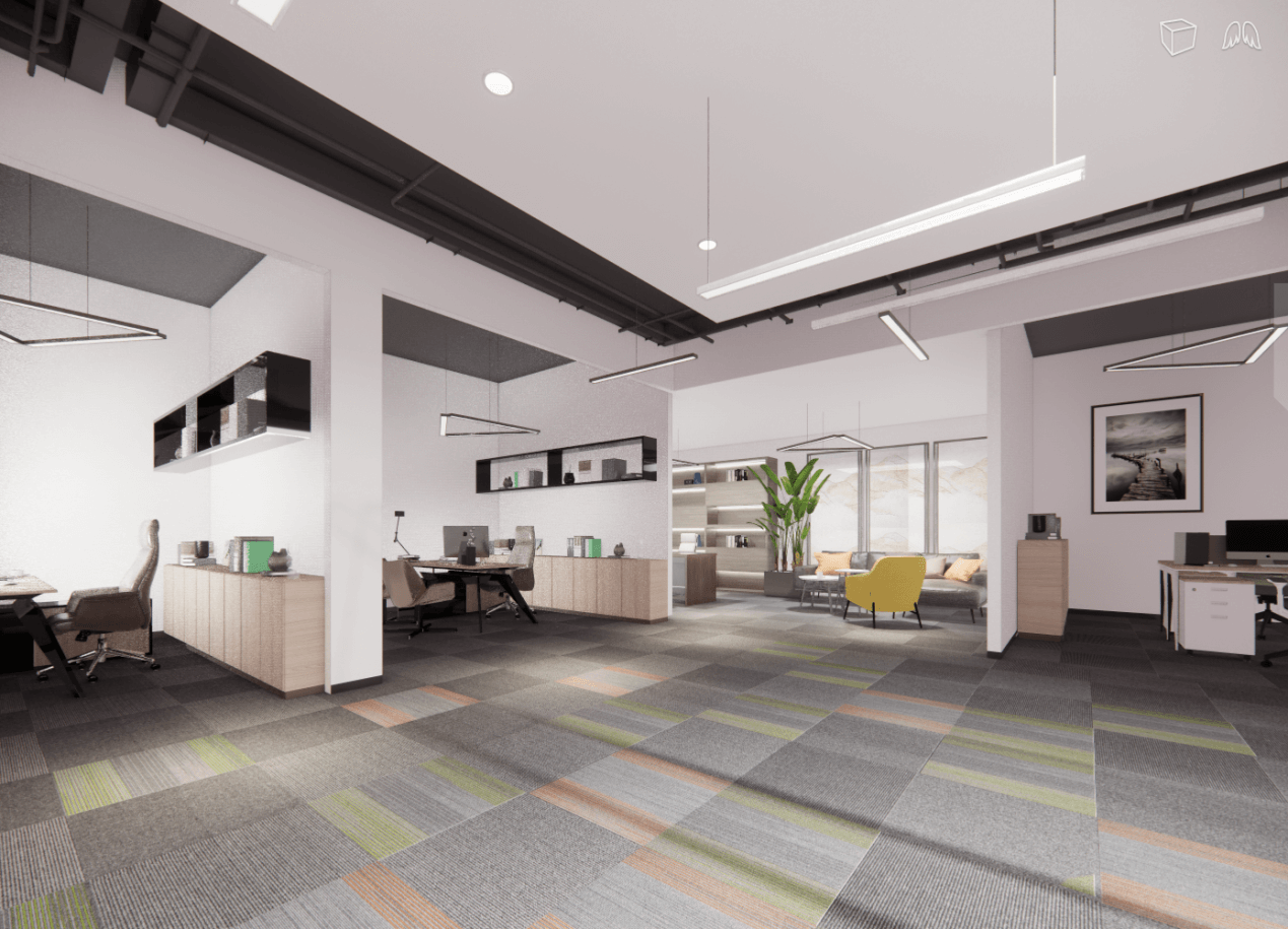 极简的设计语言,灵动而多元的功能布局,满足一切的办公需求。天花与地面没有过多的渲染,以最简洁的方式呈现。